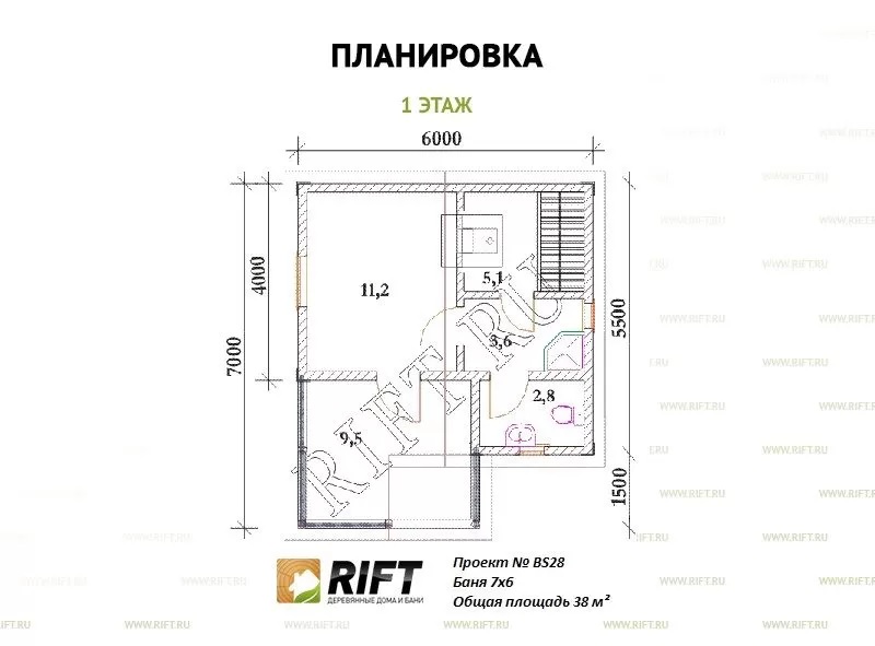 Площадь: 38 м2