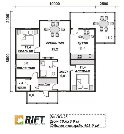 Мы готовы представить вам новый проект от компании Dom Rift – Каркасный дом DG25. Этот уникальный дом разработан с учетом потребностей клиентов и предлагает вам и вашей семье идеальное сочетание комфорта, функциональности и стиля. Цена проекта приемлемая и составляет 3320625. Площадь дома составляет 105 квадратных метров, обеспечивая просторное и уютное пространство для жизни. Благодаря использованию современных и качественных материалов, включая Каркас, мы можем отвечать за долговечность и надежность вашего будущего дома, а также энергоэффективность и экологическую безопасность. Наша команда специалистов тщательно продумывает каждую деталь проекта, учитывая все ваши пожелания. Срок реализации проекта составляет всего 30 дней дней, что позволит вам быстро и без лишних хлопот воплотить свою мечту о собственном доме как можно быстрее. Наши проектировщики вносят изменения в планы и рассчитывают прочную конструкцию дома, учитывая условия на месте строительства. Это важно для того, чтобы построить надежный и долговечный дом без дополнительных расходов. Мы также опираемся на современные тенденции применяя технологии строительства – Каркас. Этот дом имеет 1 этаж этажей и разные зоны в помещении, включая просторную гостиную для встреч с близкими, уютную кухню для семейных ужинов, комфортабельные спальни для отдыха и современные санузлы для максимального удобства. Также предусмотрены технические помещения, где размещаются котельная и другие необходимые зоны. Размер комнат – 10×8. Мы также предлагаем гибкую систему кредитования с выгодными условиями, начиная всего с 53 130, что делает покупку дома доступной для каждого. Приобретая дом dg25 от компании Дом Рифт, вы получаете не просто качественное жилье, а уютный и функциональный дом, который станет уютным местом для всей семьи.