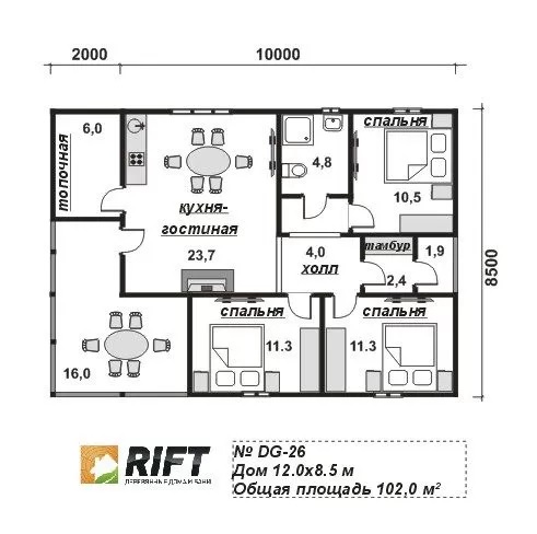Площадь: 102 м2