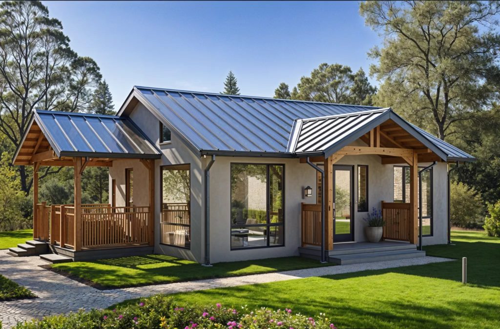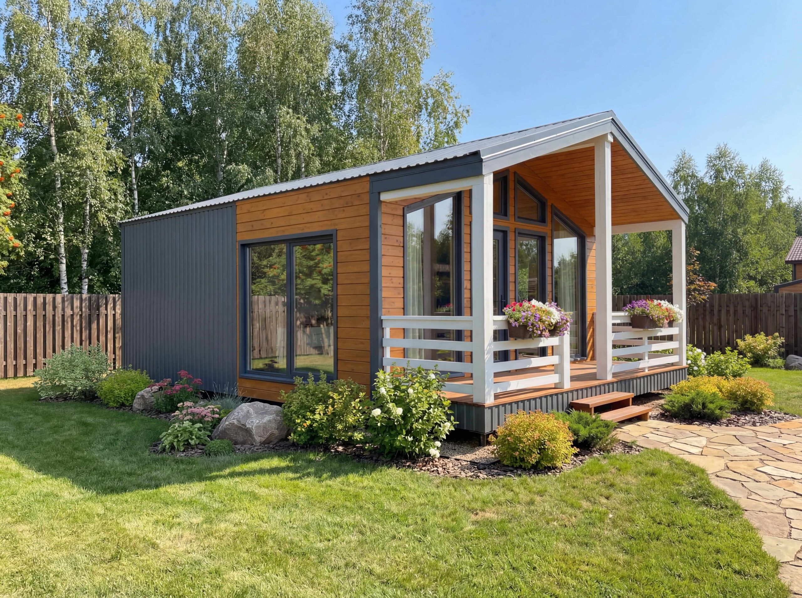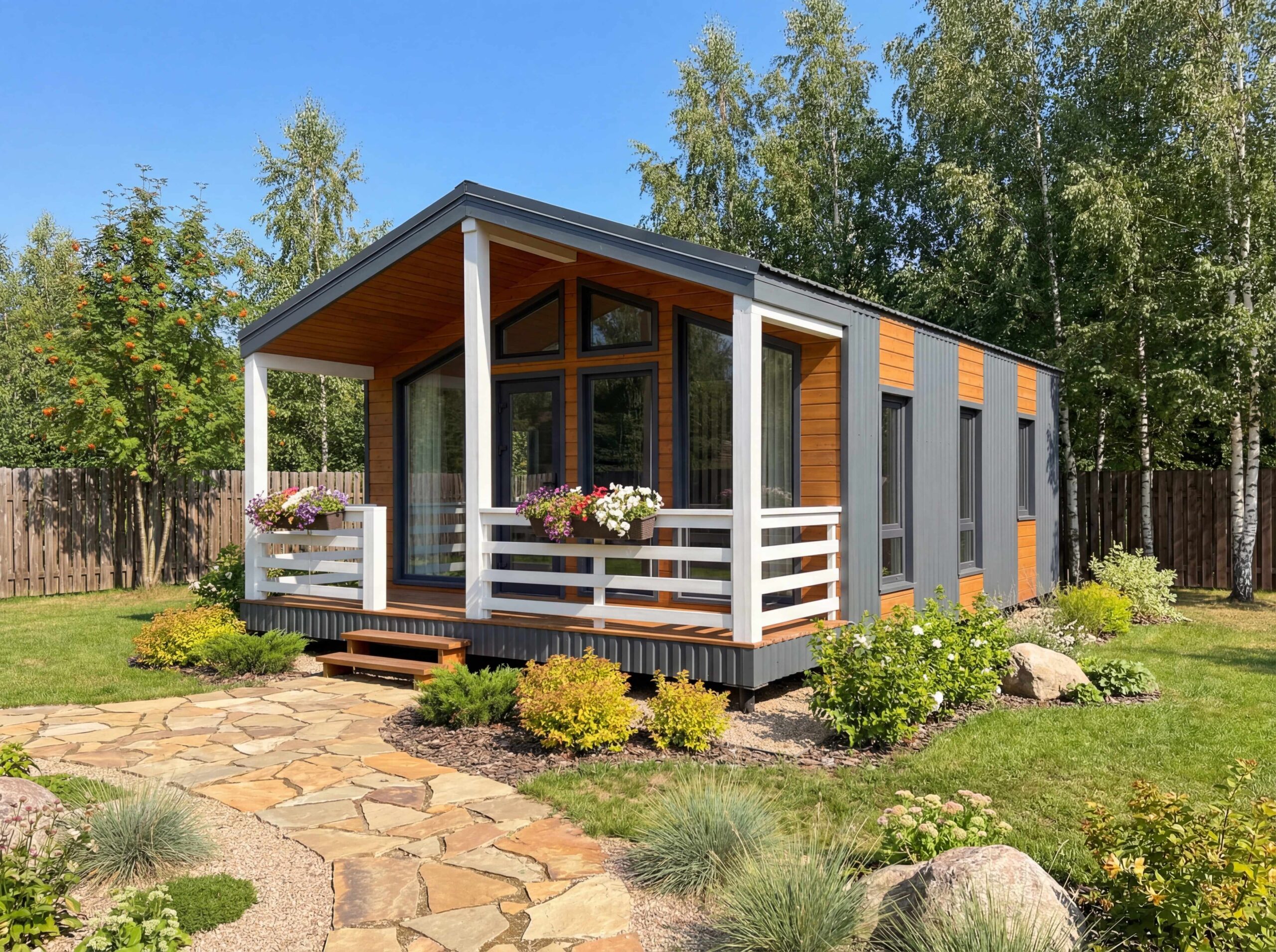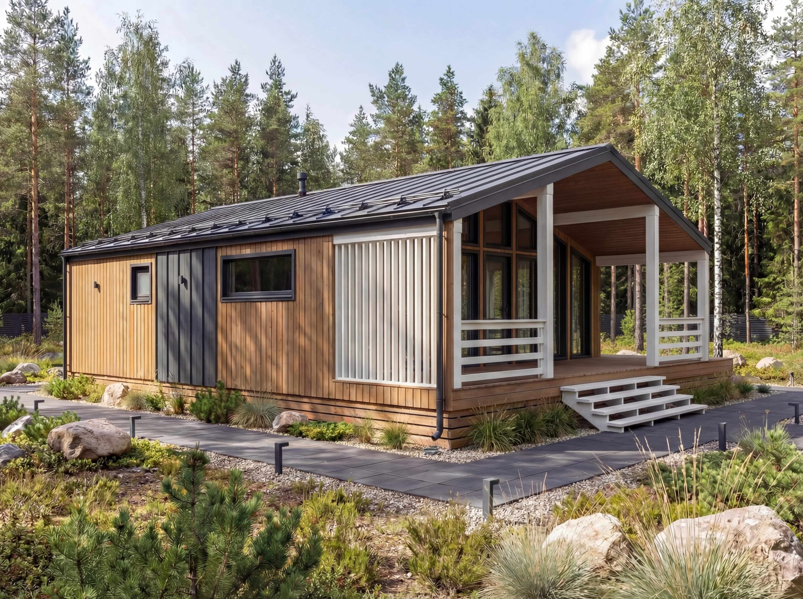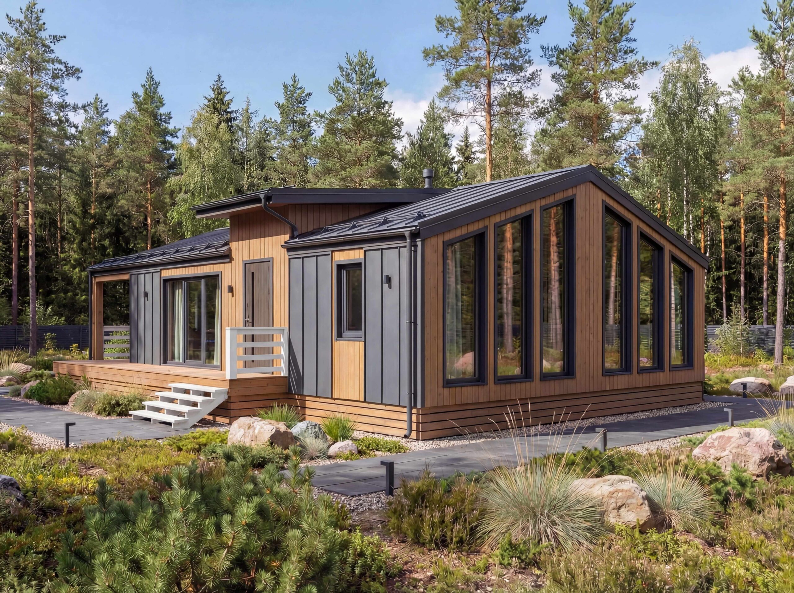 Также отметим простую отделку, которая не требует больших затрат. Обычно внешние и внутренние стены обшиваются гипсокартоном и панелями с желаемой текстурой, не требуя штукатурить стены, устанавливать обрешётки или металлические профили.