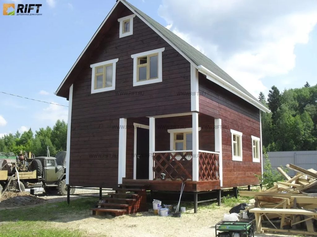 Конструкция дома выполнена из каркаса из дерева, утепленного сэндвич-панелями. Это обеспечивает отличную теплоизоляцию и снижает затраты на отопление зимой.
