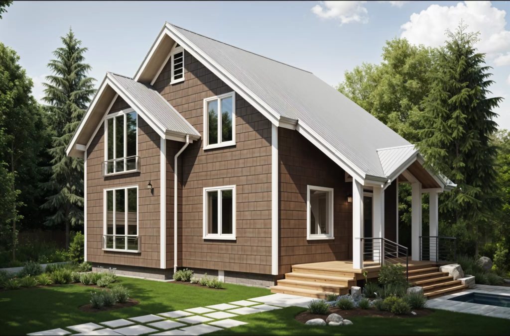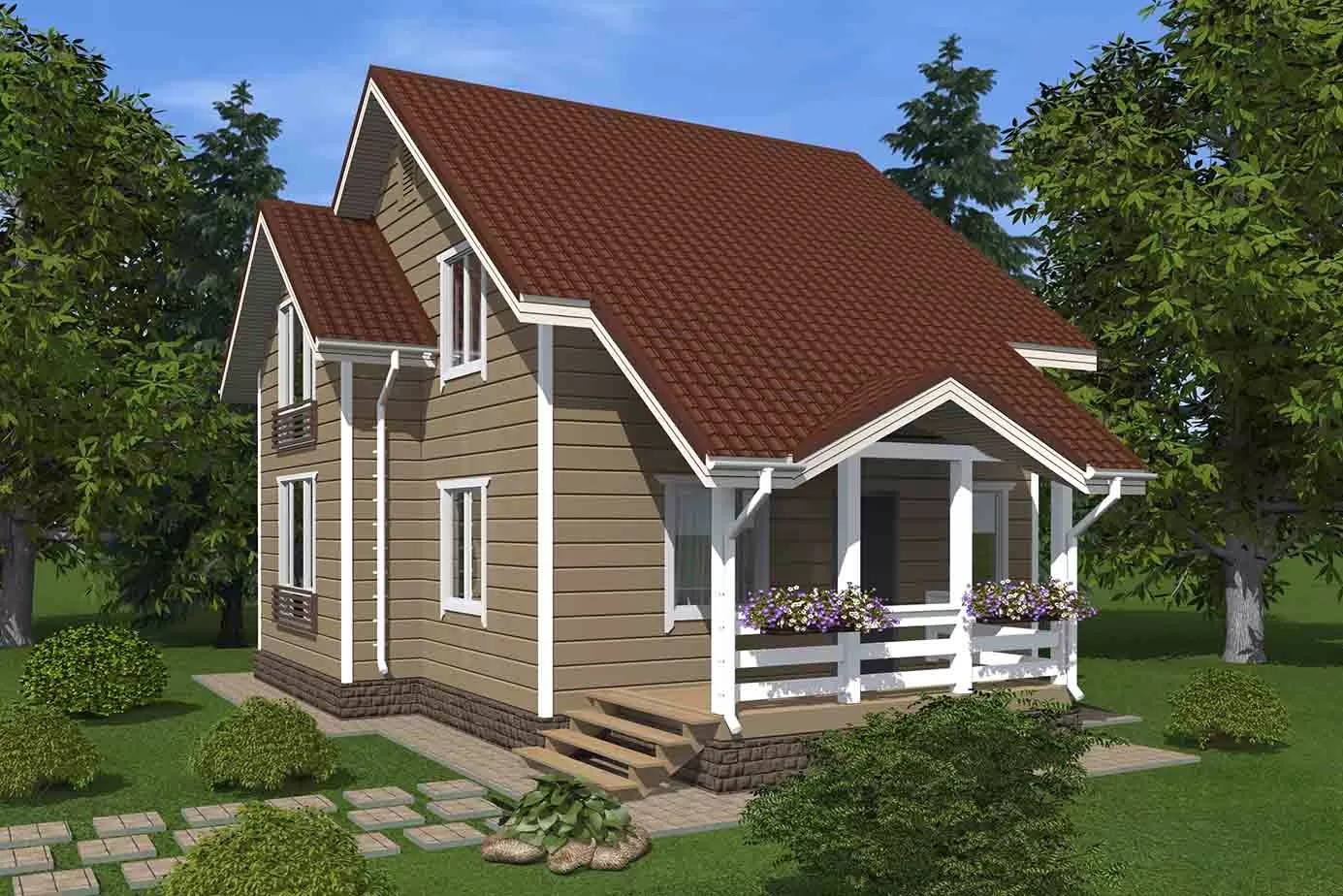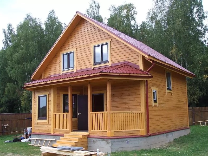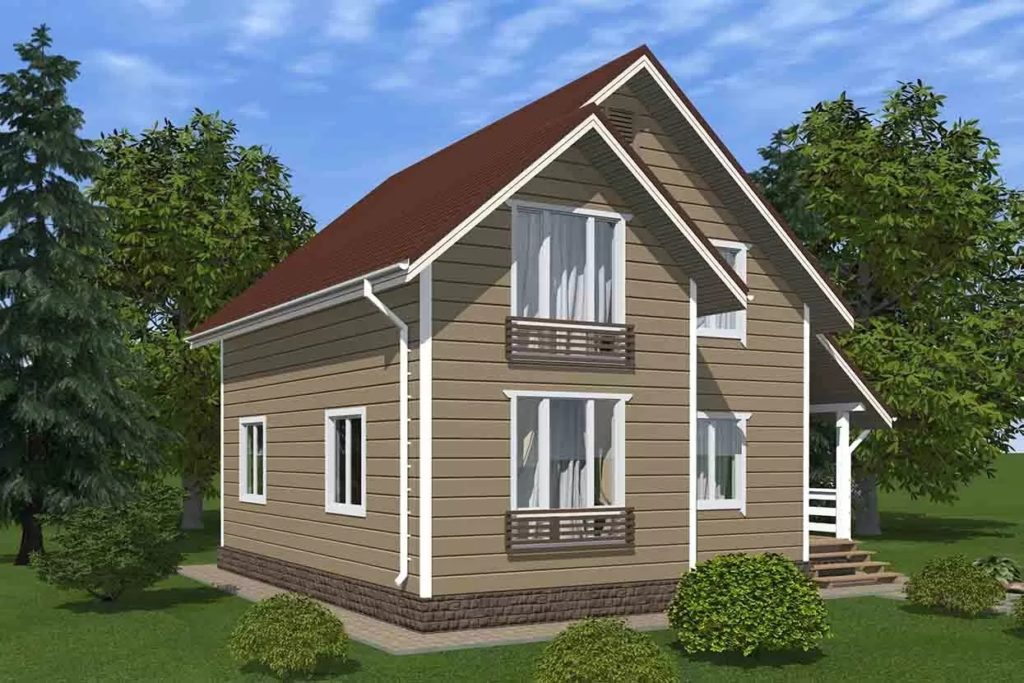Каркасно-щитовой дом выйдет по стоимости экономичнее кирпичного или брусового, но при этом не будет уступать тем в прочности и долговечности. Еще одно преимущество каркасных домов 8 на 8 в том, что их стены не дают усадки, а значит, внутреннюю отделку в коттедже можно не откладывать.