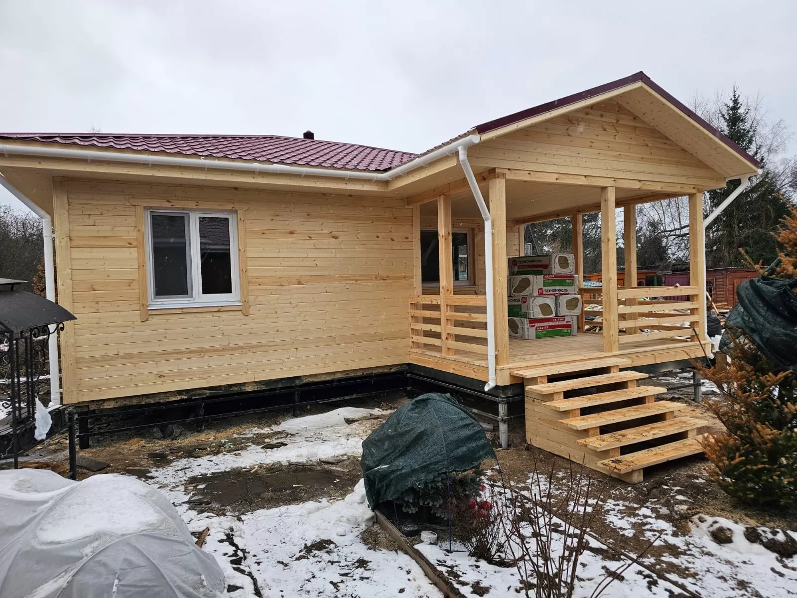 После того как каркас готов, его обшивают наружными и внутренними стенами. Для утепления стен можно использовать минеральную вату, пенопласт или другие современные теплоизоляционные материалы.